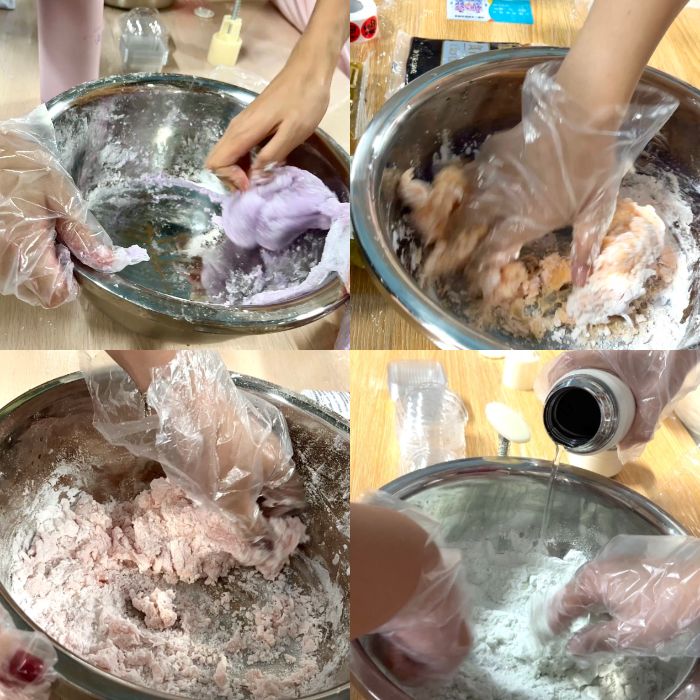 (图为支部成员认真和面 蓝灵巧 供图)