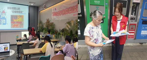 7月7日至11日,团队开展“栖霞山生态价值”主题科普周活动,深入社区与校园,通过PPT展示、动画讲解、案例分享等形式,生动阐释栖霞山的生态功能与保护意义,融入国家生态文明政策与行业前沿,帮助公众明确自身在生态保护中的责任与行动方向。活动同步设置趣味问答、互动咨询等环节,配备专业科普志愿者提供一对一解答,重点普及新污染物危害,并向中小学生发出环保倡议。同时,团队精心制作主题海报与科普手册,组织生物标本展览,以寓教于乐的方式拉近公众与自然的距离,切实提升生态保护的知晓率与参与度。