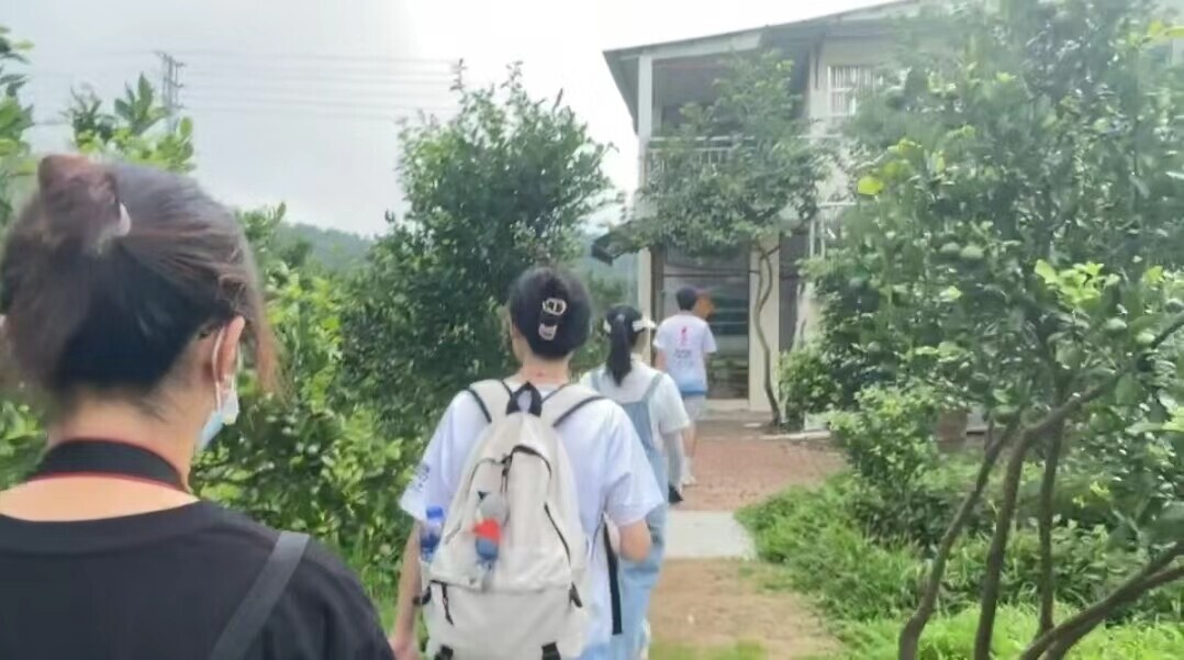 图为工作人员小冰带领团队成员实地走访贡柑种植区。 朱永豪 摄