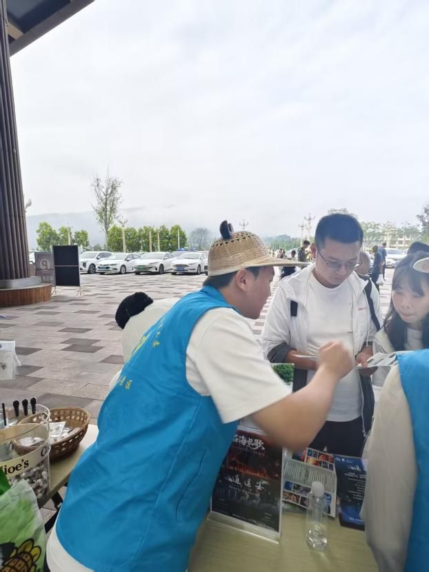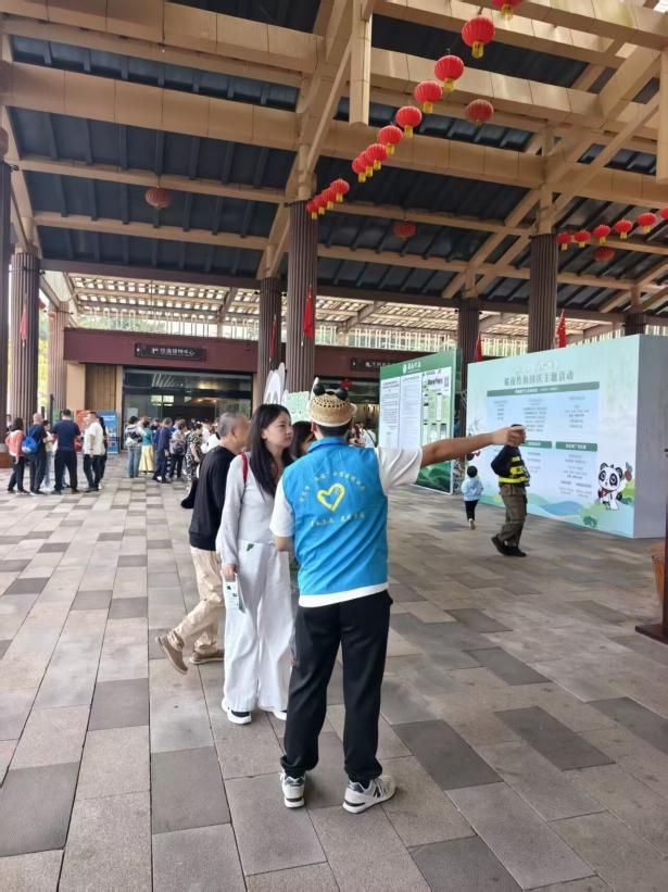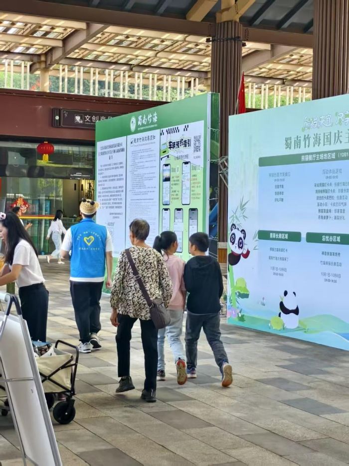 服务志愿者纷纷来到岗位热情招待来到蜀南竹海游玩的贵宾,为他们提供路线指引,行程规划,景区景点介绍等服务。其中,鲍玉根同学在遇到老年游客、幼儿游客、残障游客时,都会为其竭尽全力提供帮助,服务细致入微,让大家能够感受到景区服务的温度。