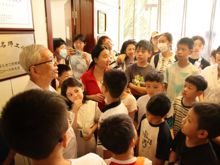 活动的高潮,是江苏省名中医、江苏省非物质文化遗产朱氏针法继承人、全国老中医药专家学术经验指导老师——朱新太介绍朱氏针法。孩子们围在他身旁,目光紧紧追随着老先生。那一刻,“朱氏针法” 不再是一个抽象的名词或非遗的头衔,它化作了一种看得见、感受得到的神奇魅力,在老先生的介绍中,诉说着跨越时光的医道匠心。这份源自实践的震撼,深深印在了每一个小郎中的心里。