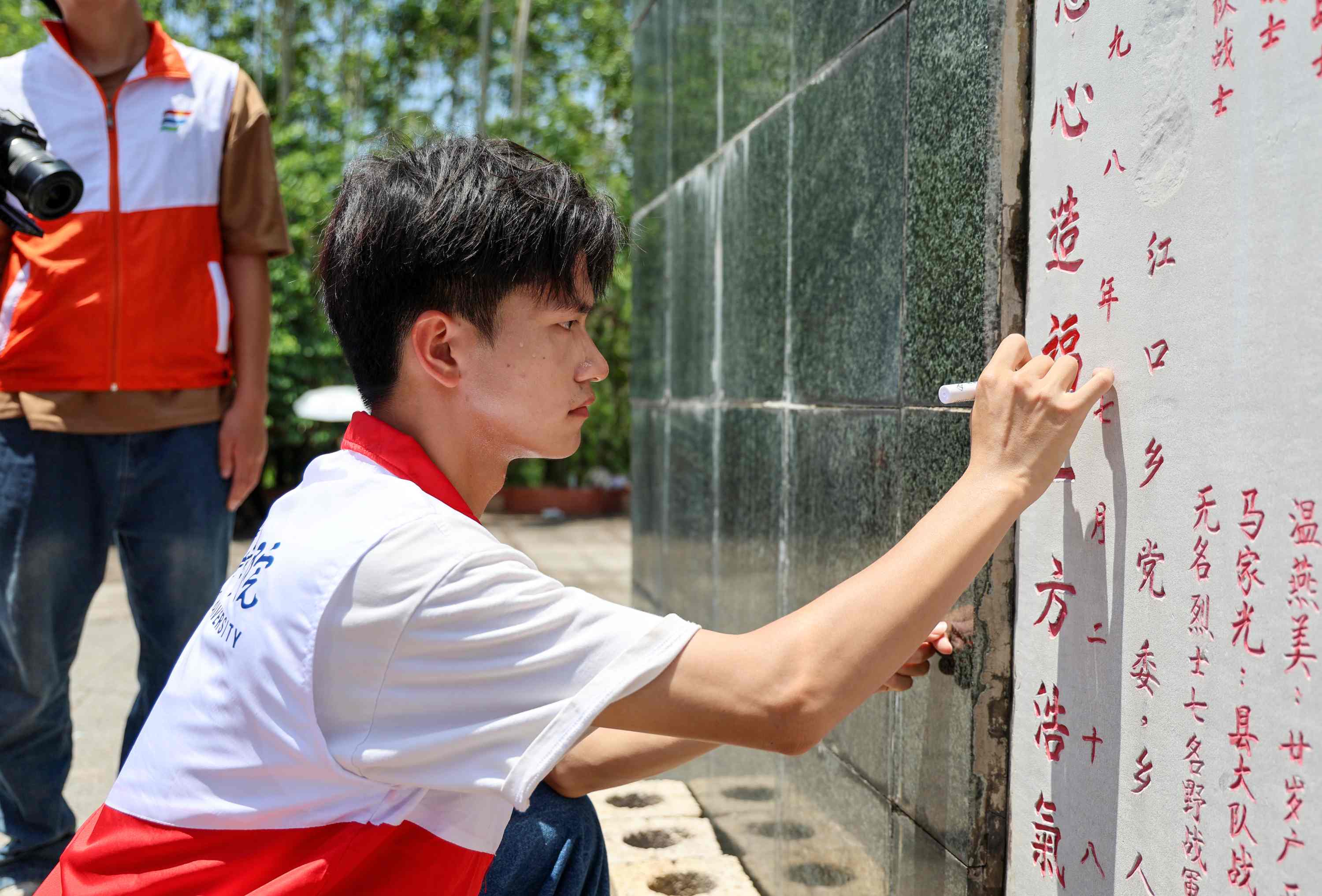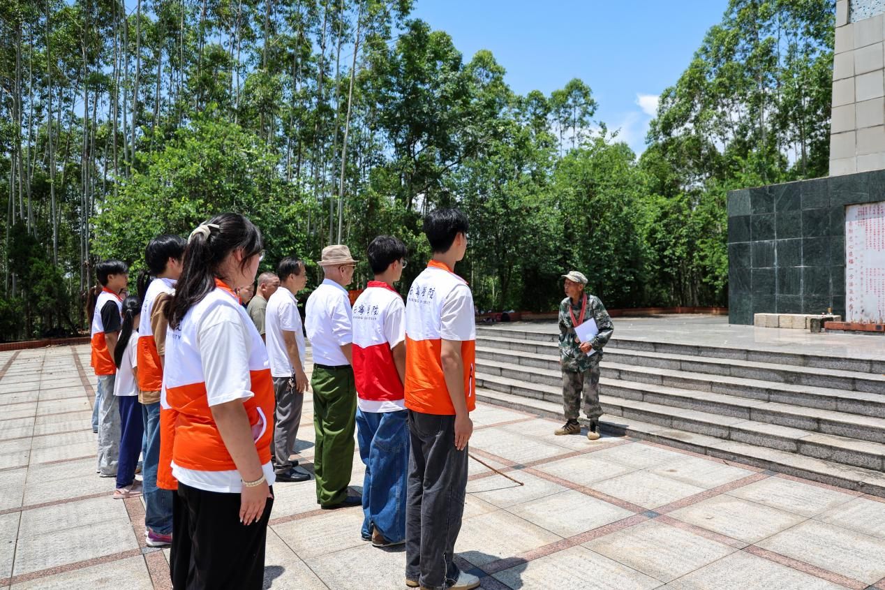 7月14日,南宁学院“烽火守魂,匠心筑梦”——“不孤”薪火相传实践团抵达柳州市鹿寨县第二站——江口乡烈士陵园,实践团成员与退役军人蓝春华爷爷、韦清来爷爷一同前往爱国主义教育基地,瞻仰革命烈士永垂不朽碑。来到碑前,93岁的老兵莫兆明早已等候在此。看到年轻的实践团成员,莫兆明老人十分激动的说:“今天看到你们这些年轻人来了解历史,我心里特别激动。我们脚下的江口乡,七十多年前曾是剿匪斗争的前沿阵地。”