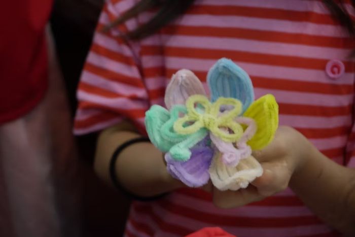 在扭扭棒活动环节,色彩缤纷的扭扭棒成了孩子们手中的“魔法道具”。他们的小手灵活舞动,时而弯曲,时而缠绕,专注神情仿佛在施展神奇魔法。每一个作品都独一无二,充满天马行空的创意。孩子们在创作过程中,不仅锻炼了动手能力,更激发了无限想象力。志愿者们积极融入其中,与孩子们并肩作战。当遇到复杂操作,孩子们手足无措时,志愿者们及时伸出援手,耐心辅助他们完成。一件件“大作”顺利完成后,孩子和志愿者脸上都洋溢着满满的成就感,孩子们更是拥有了属于自己的心仪作品,这份喜悦在空气中久久弥漫。